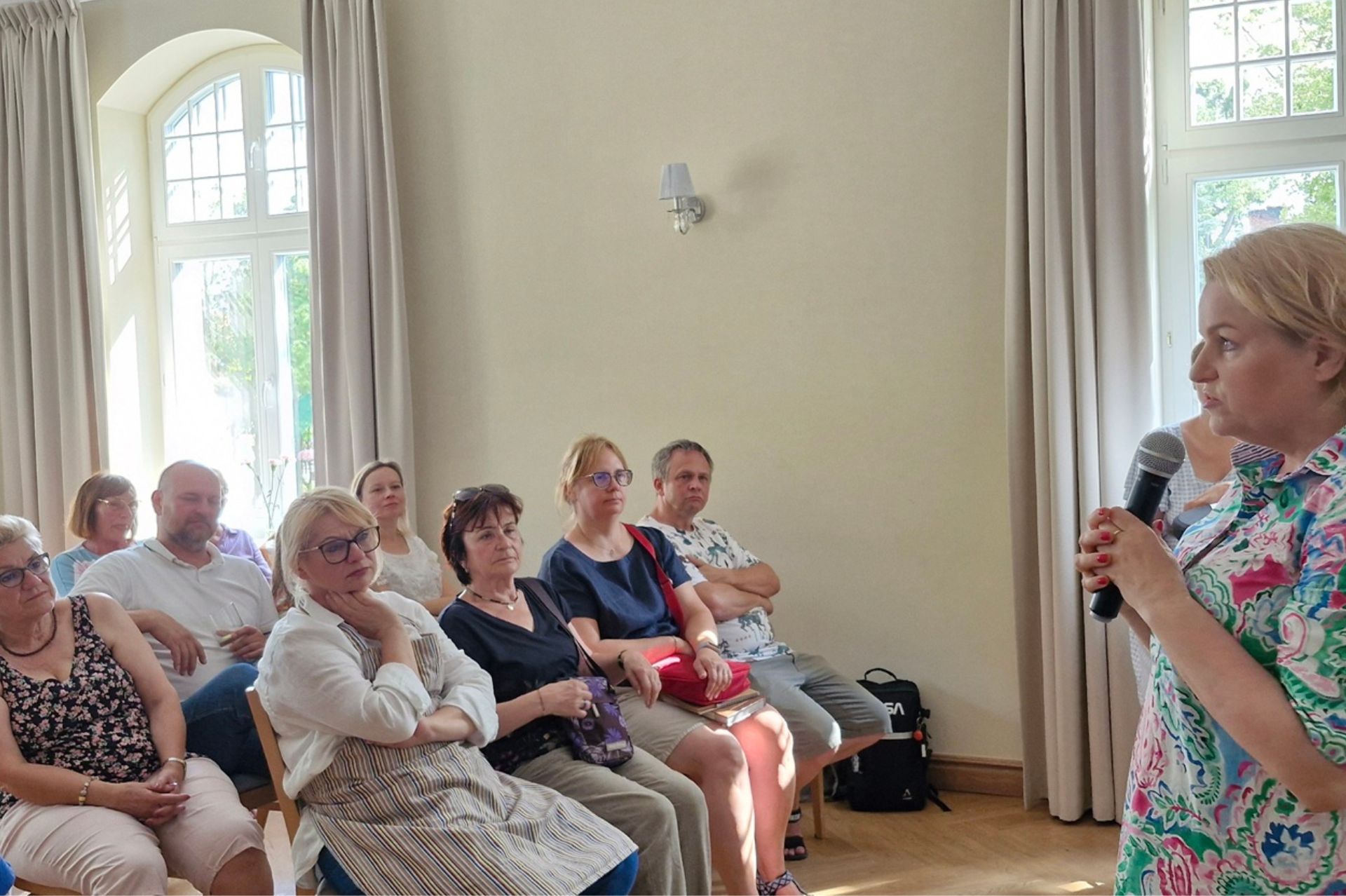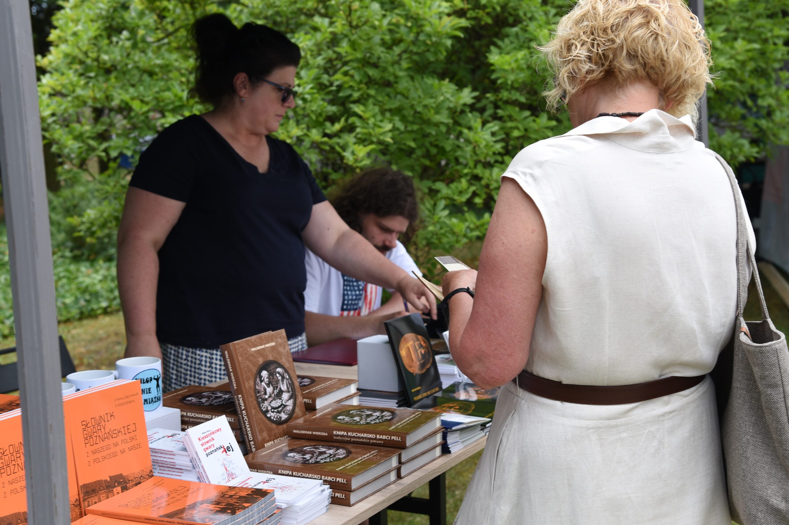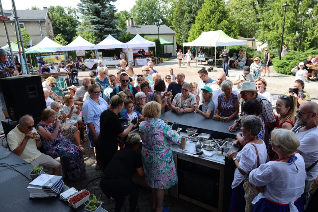 W samym dworze było równie ciekawie: Waldemar Wierzba zaprezentował najnowszą książkę „Knipa kucharsko babci Peli, tradycyjne poznańskie potrawy”. Adam Łukawski zaprezentował swoją kolekcję artefaktów polskich fabryk wódek od wieku XIX do lat 50. wieku XX. O owocach, ziołach i innych produktach do wykonania tradycyjnych letnich nalewek opowiadali Hieronim Błażejak i Janusz Łakomiec. Można było się także wirtualnie wybrać na zakupy z Katarzyną Bosacką, która zachęcała do czytania etykiet produktów spożywczych i informowała o zagrożeniach płynących z jedzenia wysoko przetworzonej żywności. Są wakacje, nie mogło też zabraknąć opowieści o podróżach i to nie byle jakich. Tadeusz Pięta, mieszkaniec sąsiedniej wsi Tomiczki wiódł uczestników spotkania przez kontynenty, by pokazać kraje i techniki wyplatania wikliny oraz sukcesy konkursów plecionkarskich, w których uczestniczył. Polskie plecionkarstwo bowiem jest w drodze na listę UNESCO, o czym przypomniała dr. Karolina Echaust z Instytutu Skrzynki.