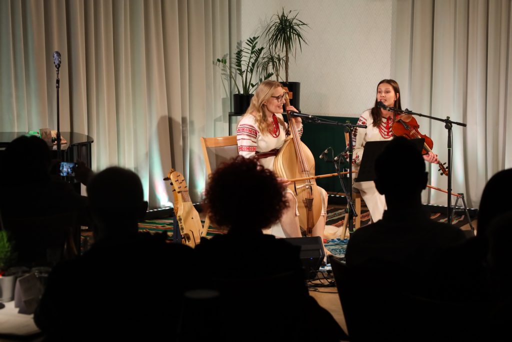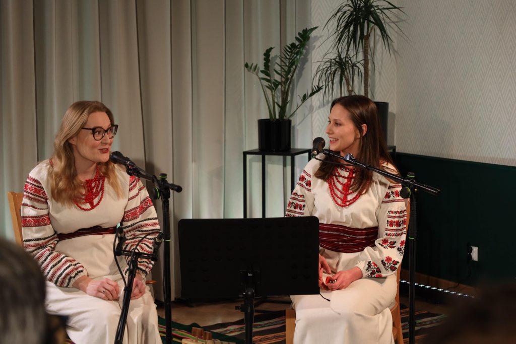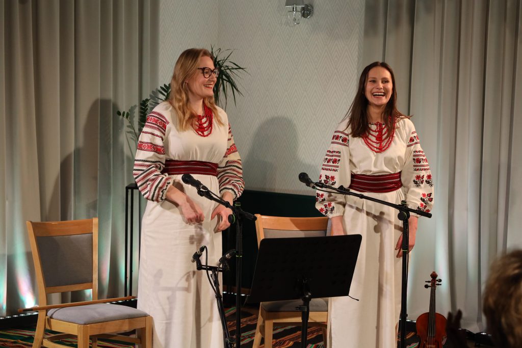 Był to drugi koncert Duetu Wspak w Skrzynkach — powrót artystek do miejsca, w którym przed rokiem po raz pierwszy oczarowały słuchaczy. Tamten występ zapisał się w pamięci publiczności jako wydarzenie niezwykle poruszające; tegoroczne spotkanie potwierdziło artystyczną konsekwencję duetu i pogłębiło emocjonalny wymiar ich muzycznej opowieści. Duet Wspak ma na swoim koncie wydane dwie płyty, w tym album z kolędami, będący zapisem ich scenicznych poszukiwań i wrażliwości na repertuar tradycyjny. Dopełnieniem całości były stroje sceniczne, które w dyskretny, lecz znaczący sposób współtworzyły atmosferę koncertu. Jasne, stylizowane suknie inspirowane tradycyjnym haftem oraz czerwone korale przywoływały estetykę ludową bez dosłowności i nadmiaru. Prostota formy i naturalność materiałów harmonijnie współbrzmiały z charakterem wykonywanej muzyki, podkreślając jej zakorzenienie w tradycji i autentyczność przekazu.