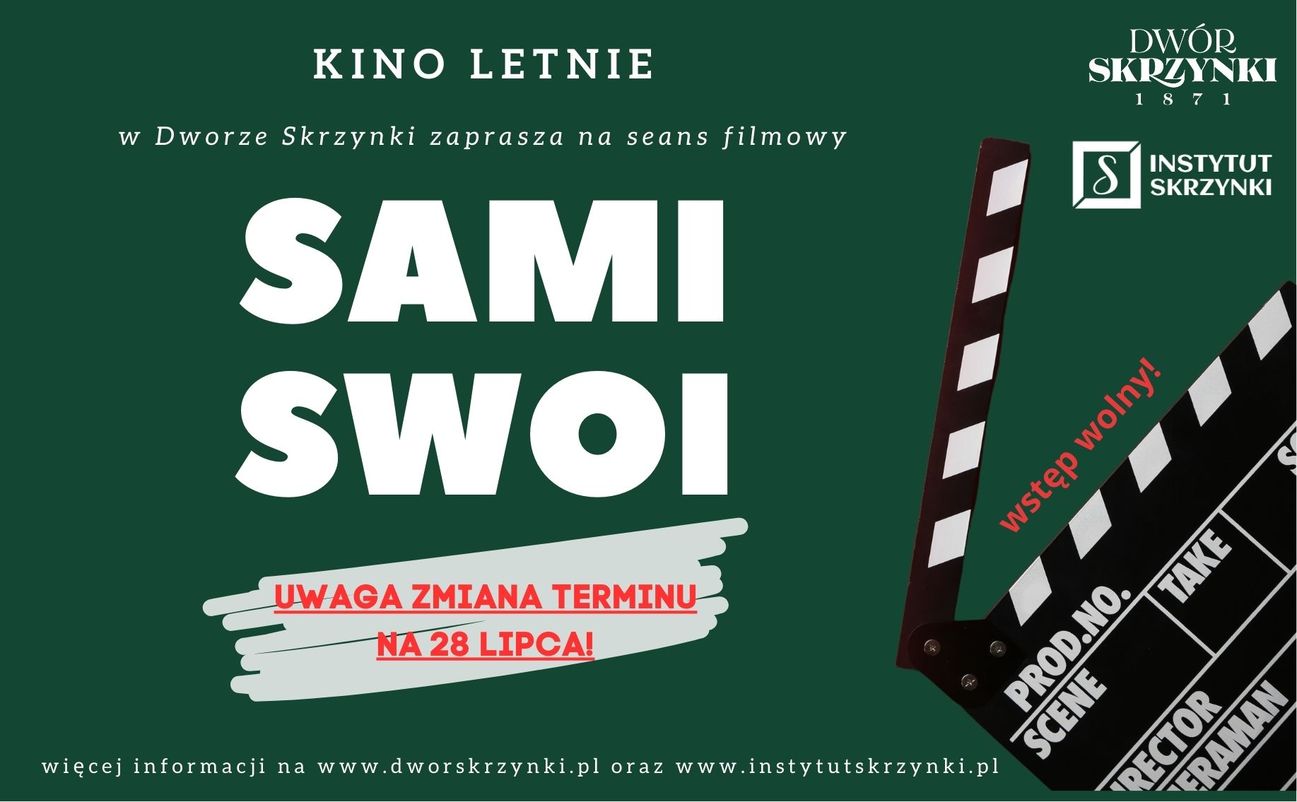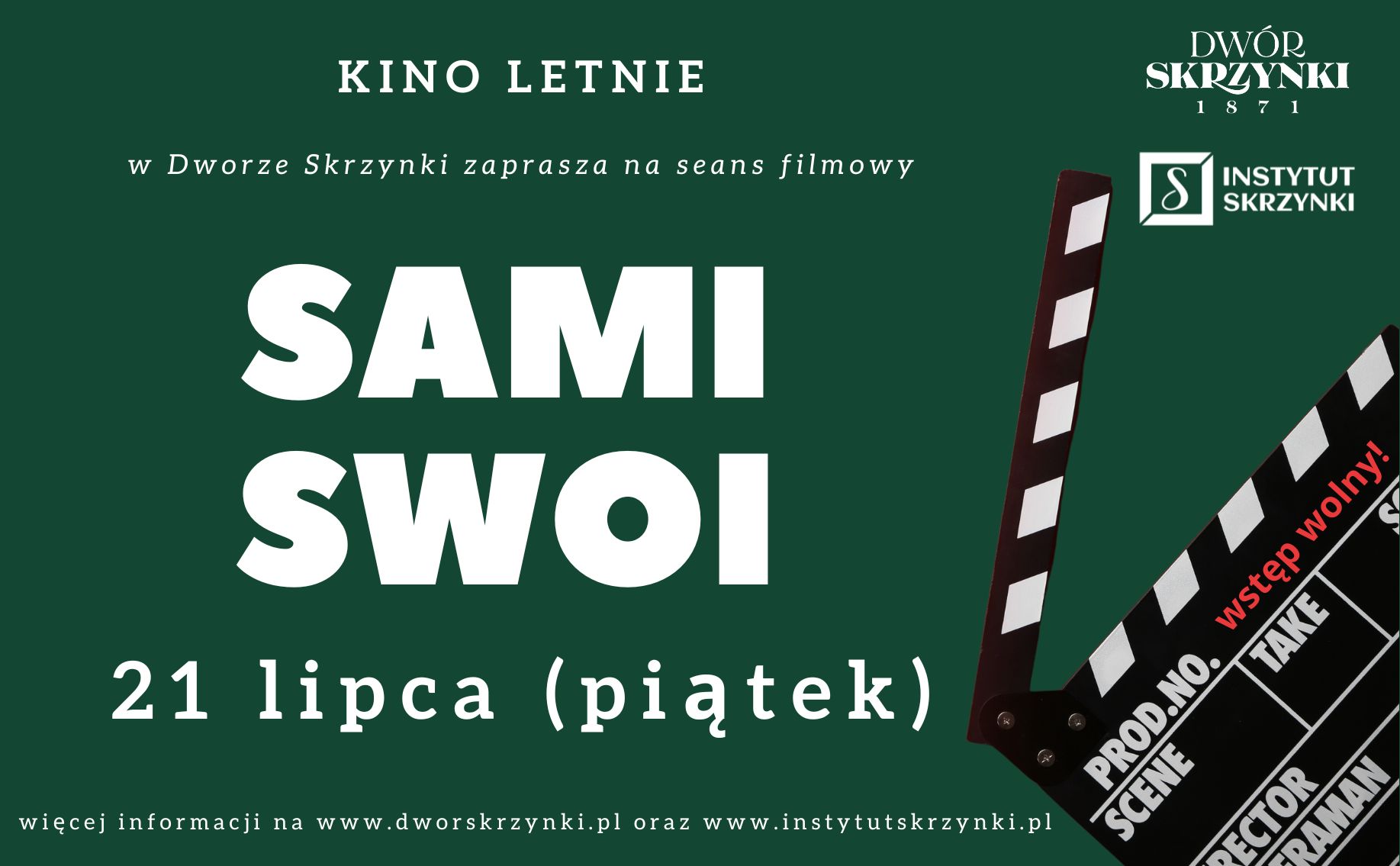 Już w piątek, 21 lipca br. Dwór Skrzynki (Pl. Parkowy 1, 62-060 Skrzynki, gm. Stęszew, powiat poznański) zaprasza na pierwszy seans Kina Letniego w tym sezonie! Na pierwszy ogień klasyk polskiej komediowej kinematografii: „Sami Swoi” w reżyserii Sylwestra Chęcińskiego. Wielbicieli Karguli i Pawlaków zapraszamy wieczorową porą – atrakcje zgodnie z harmonogramem: punktualnie o 19.30 dla […]