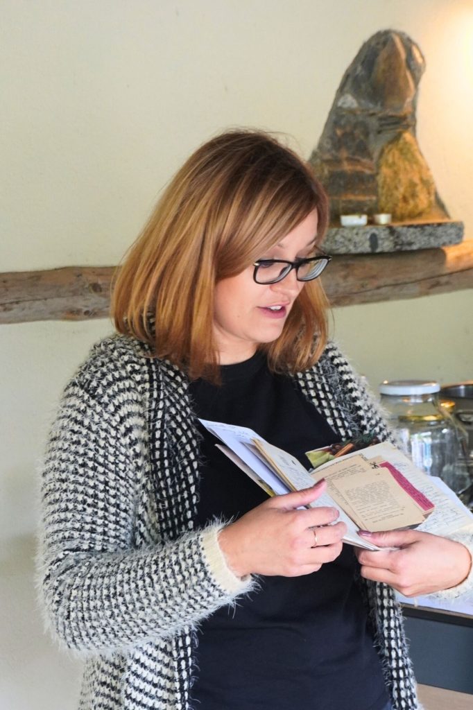 Spotkanie, zgodnie z założeniem projektu, było także okazją do prezentacji przepiśników i kuchennych utensyliów przyniesionych przez uczestników. Historią uszytego i wyszywanego w 1935 roku prababcię fartuszka odpowiedziała występująca w roli eksperta Liliana Kubiak, zastępca dyrektora Instytutu Skrzynki. Zachęcała do zapisywania takich historii, jak i receptur na przysmaki naszych prababć, babć, mam i teściowych. Dzięki takim właśnie zapiskom swojej mamy, podzieliła się także z obecnymi swoją rodzinną recepturą pochodzącą od prababci na kiszone ogórki, które pod jej okiem przygotowali uczestnicy. Aromat czosnku, kopru, chrzanu, ale tez ziela angielskiego i liści laurowych zapowiadał, że smakowite ogórki będą doskonałym dodatkiem do zimnych nóżek serwowanych podczas wielkiego finału projektu planowanego na wspomniany festyn 21 września.