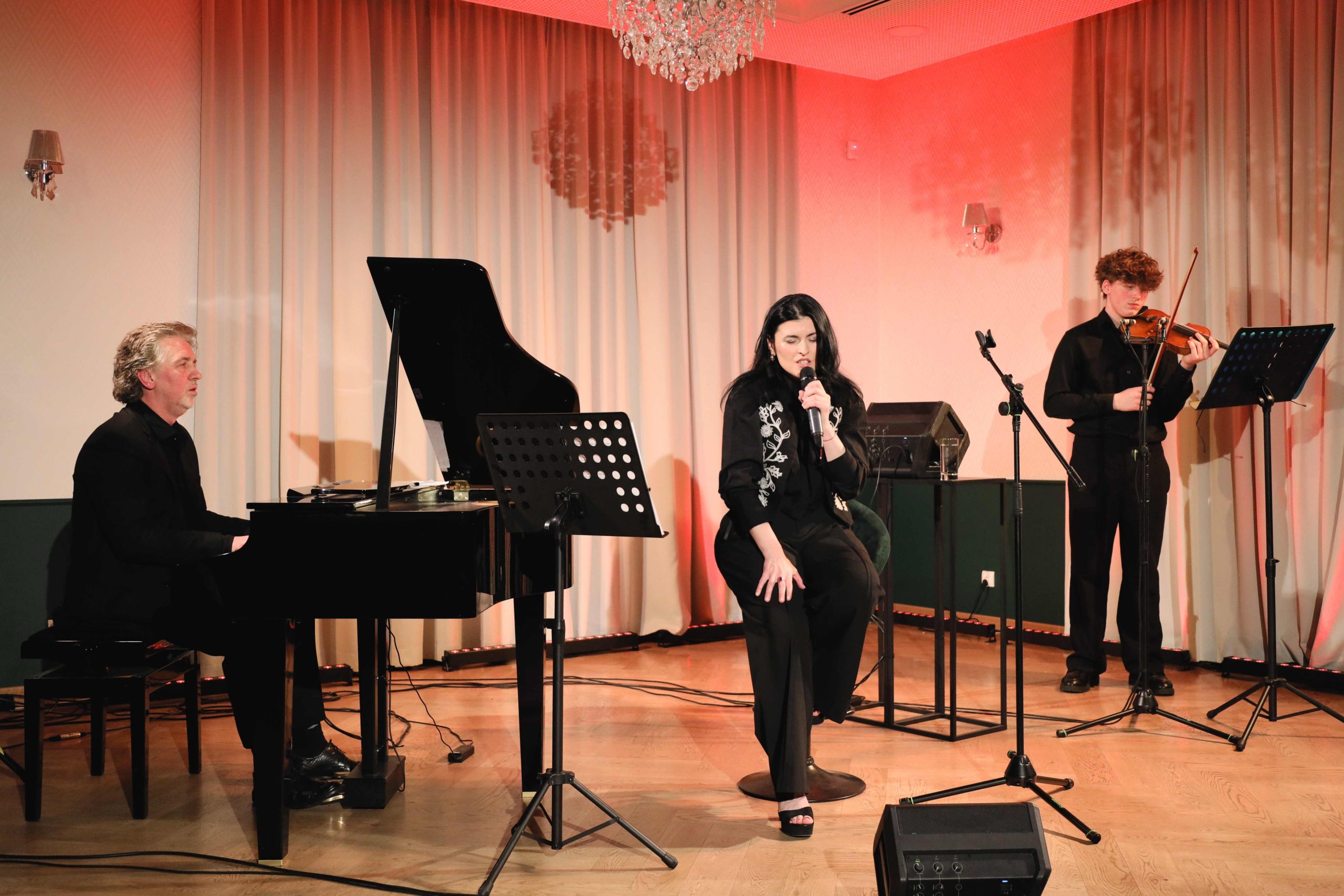 Na scenie j towarzyszyli jej: Marek Bazela (fortepian) oraz Sebastian Bazela (skrzypc), współtworząc spójną i nastrojową opowieść muzyczną. Podczas koncertu wybrzmiały zarówno klasyczne utwory fado wykonywane w języku portugalskim, jak i kompozycje w języku polskim — fado z polską duszą, tworzone specjalnie dla artystki. Kompozytorem wszystkich polskich utworów śpiewanych przez Kingę jest Marek Bazela.