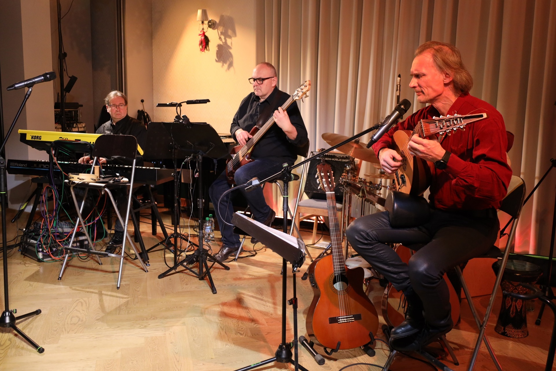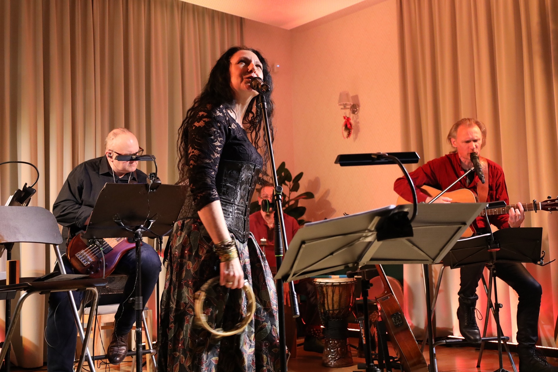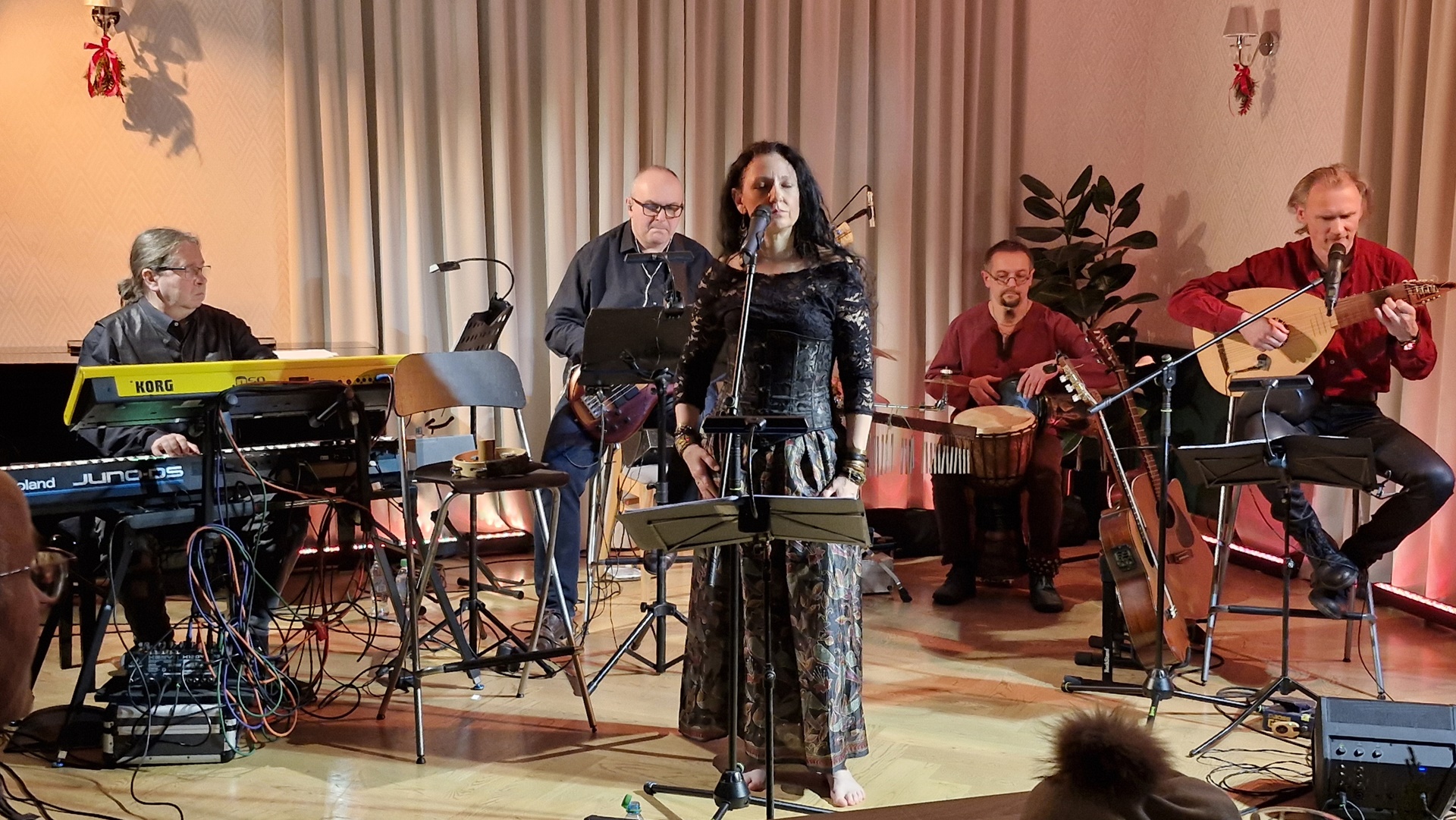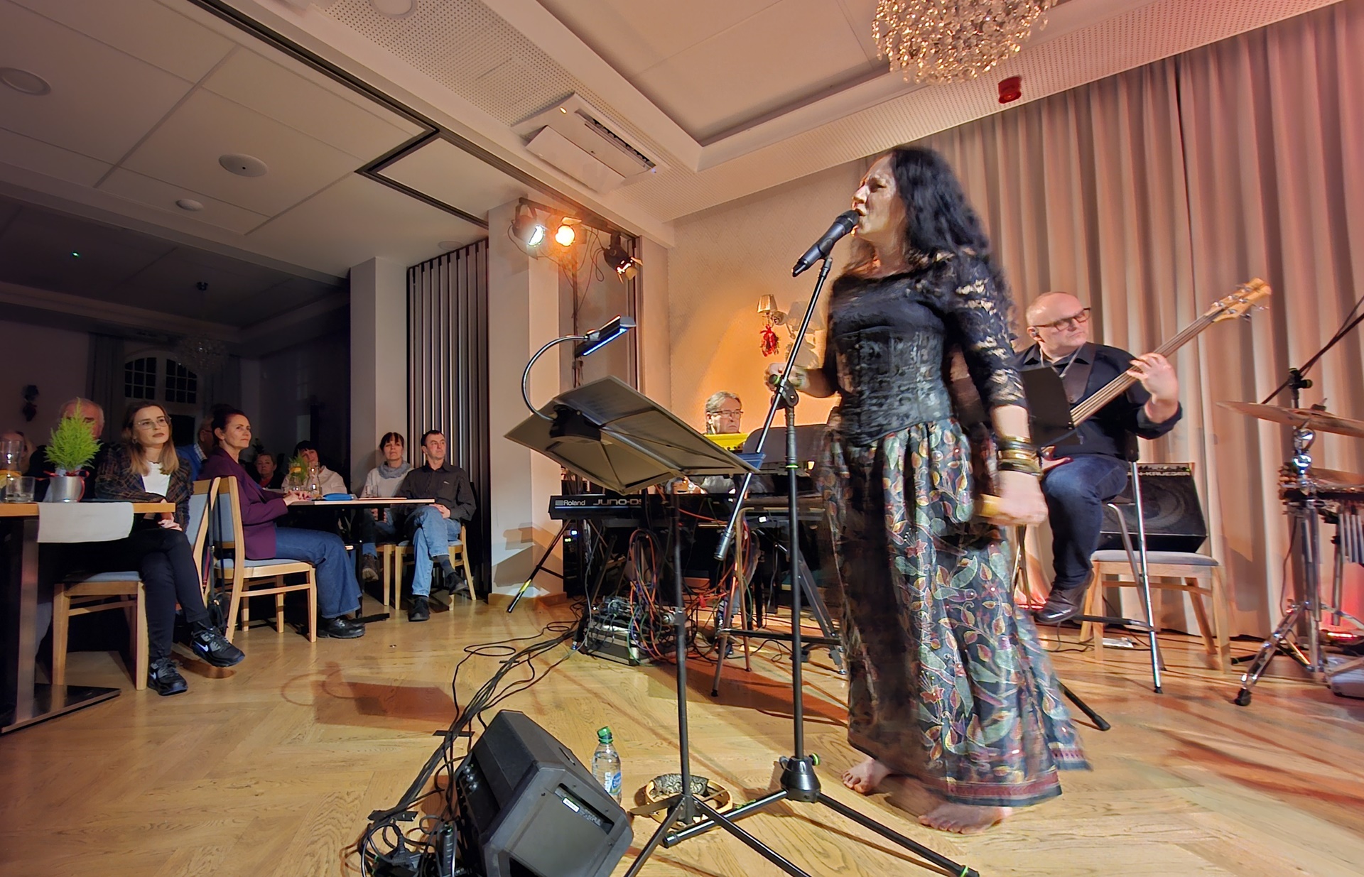 Po szaro-burym dniu, w piątkowy wieczór 10 stycznia 2025 r. muzycy zespołu Good Staff byli jak wielobarwna grupa trubadurów, która wraz z piękną muzyką i dobrym słowem przybyła do Skrzynek. Przywieźli ze sobą jakąś magiczną aurę, gdyż z chwilą rozpoczęcia śpiewu przez Anię Winiarską zaczął padać śnieg, tworząc za oknem, w Skrzynkowym parku baśniową scenografię.