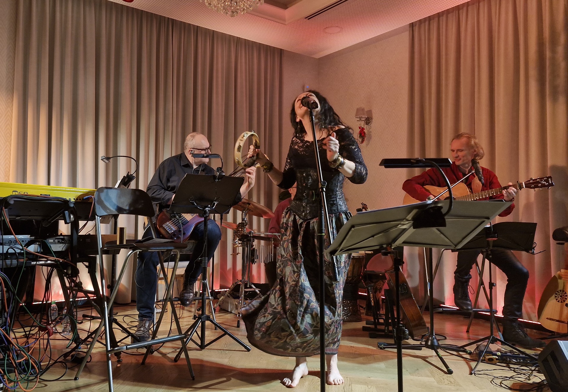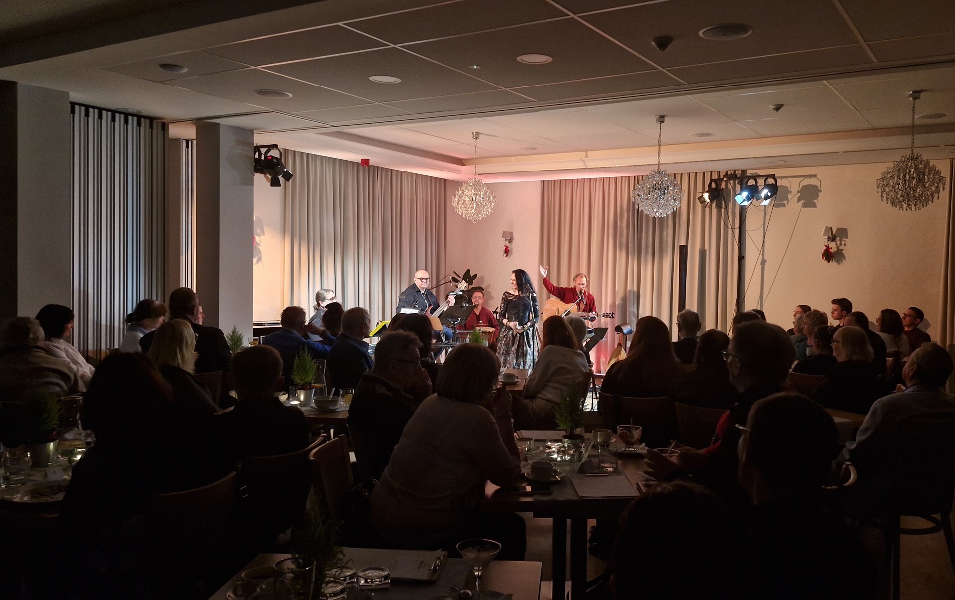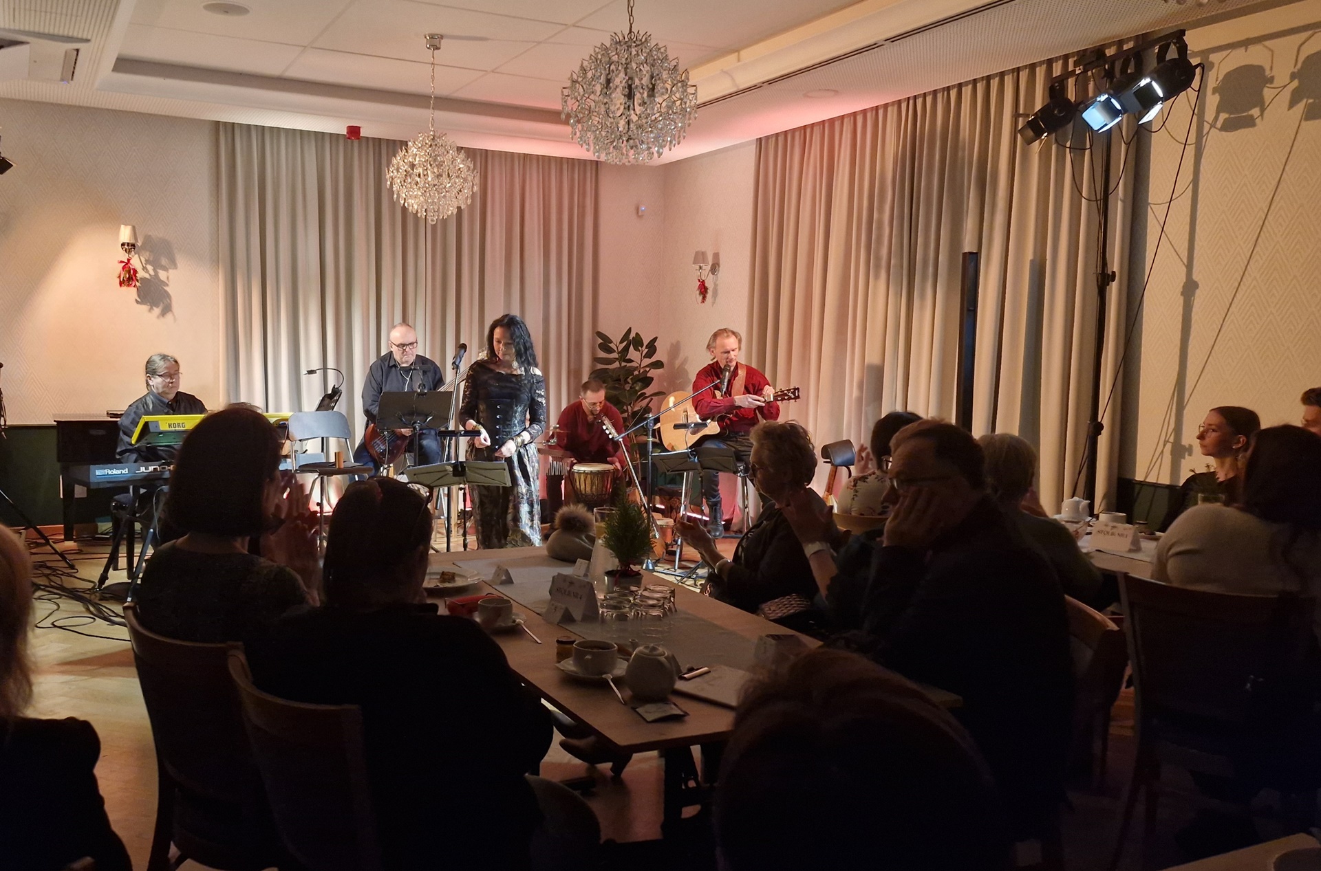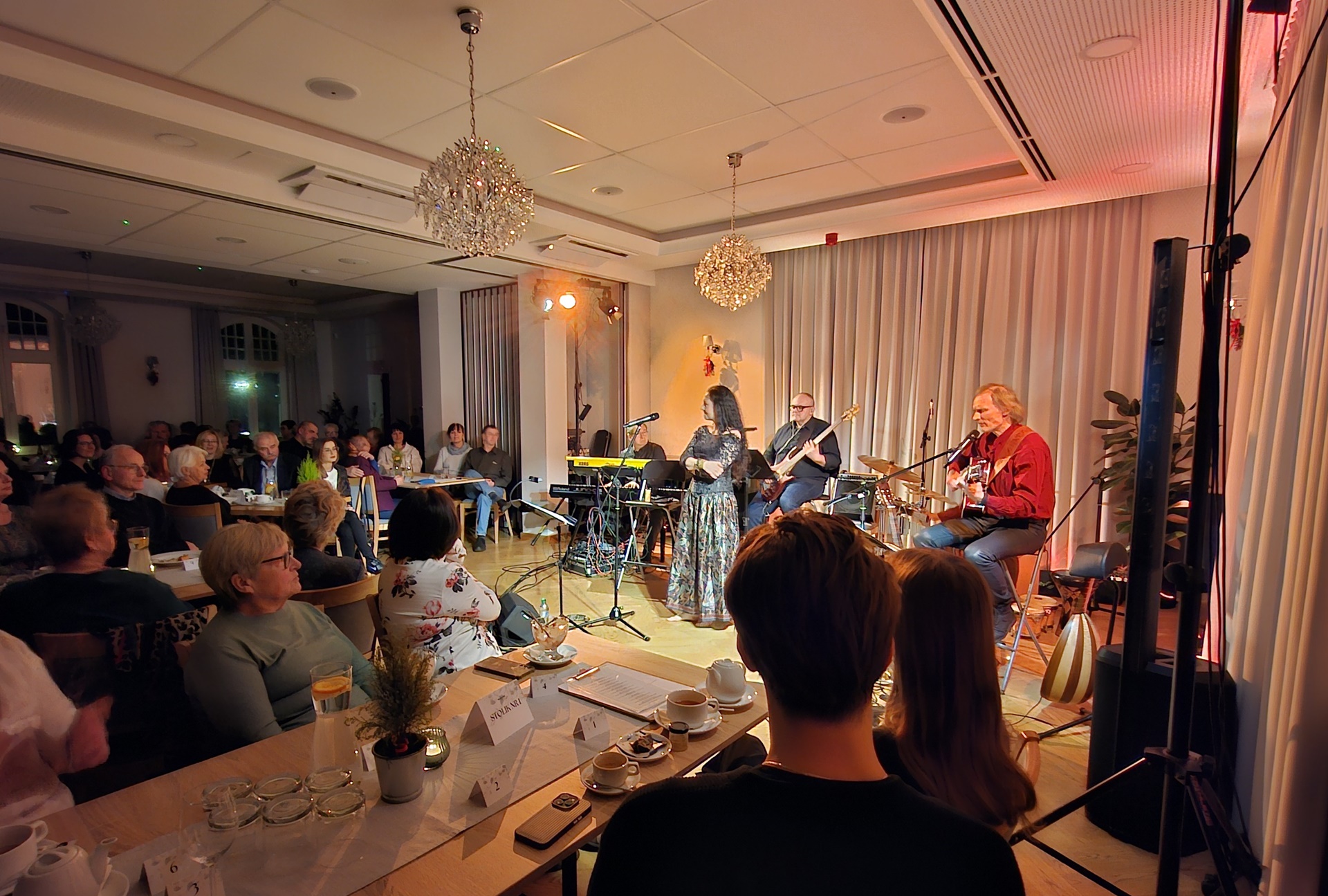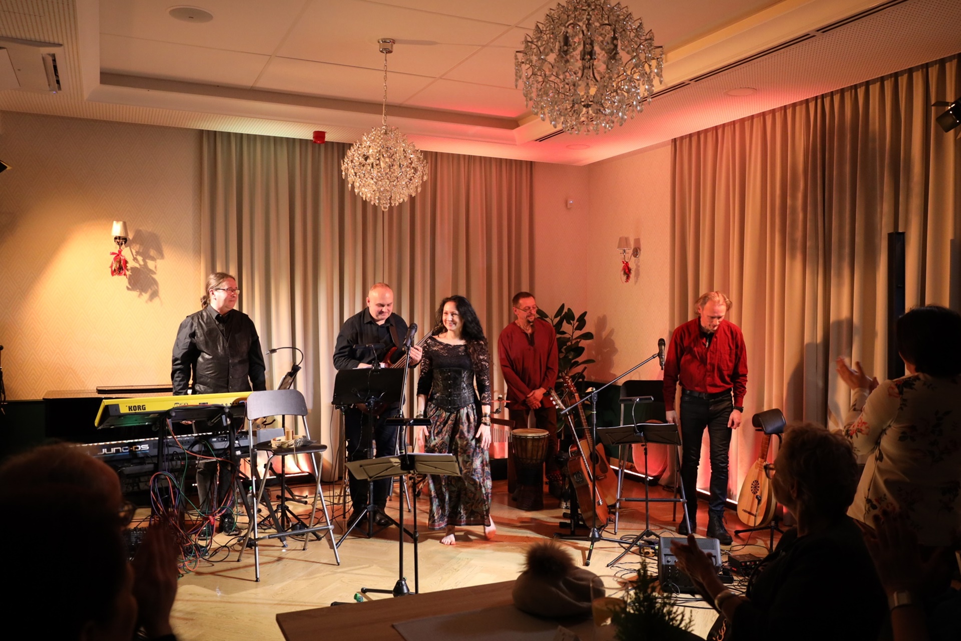 Po szaro-burym dniu, w piątkowy wieczór 10 stycznia 2025 r. muzycy zespołu Good Staff byli jak wielobarwna grupa trubadurów, która wraz z piękną muzyką i dobrym słowem przybyła do Skrzynek. Przywieźli ze sobą jakąś magiczną aurę, gdyż z chwilą rozpoczęcia śpiewu przez Anię Winiarską zaczął padać śnieg, tworząc za oknem, w Skrzynkowym parku baśniową scenografię.