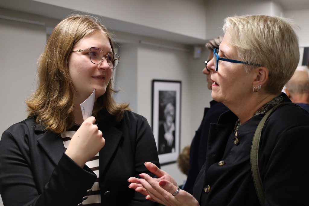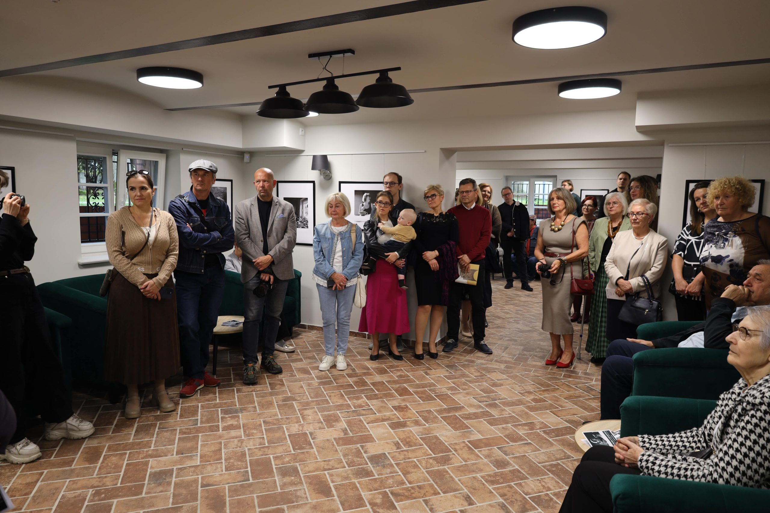 Siła czarno-białej fotografii polega na tym, że wydobywa więcej niż kolor – skupia uwagę na geście, spojrzeniu i emocji, nadając scenom ponadczasowy charakter. Takie właśnie obrazy zaprezentował Tomasz Łuczak podczas wernisażu wystawy „Głodne i spragnione. Kobiety na drodze ku szczęśliwości”, który odbył się w niedzielę 28 września 2025 w Galerii Dworu Skrzynki. Spotkanie prowadził dyrektor Instytutu Skrzynki Jan Babczyszyn, który nie tylko formalnie otworzył wystawę, ale zadbał o atmosferę całego spotkania, pełnego rozmów i refleksji.