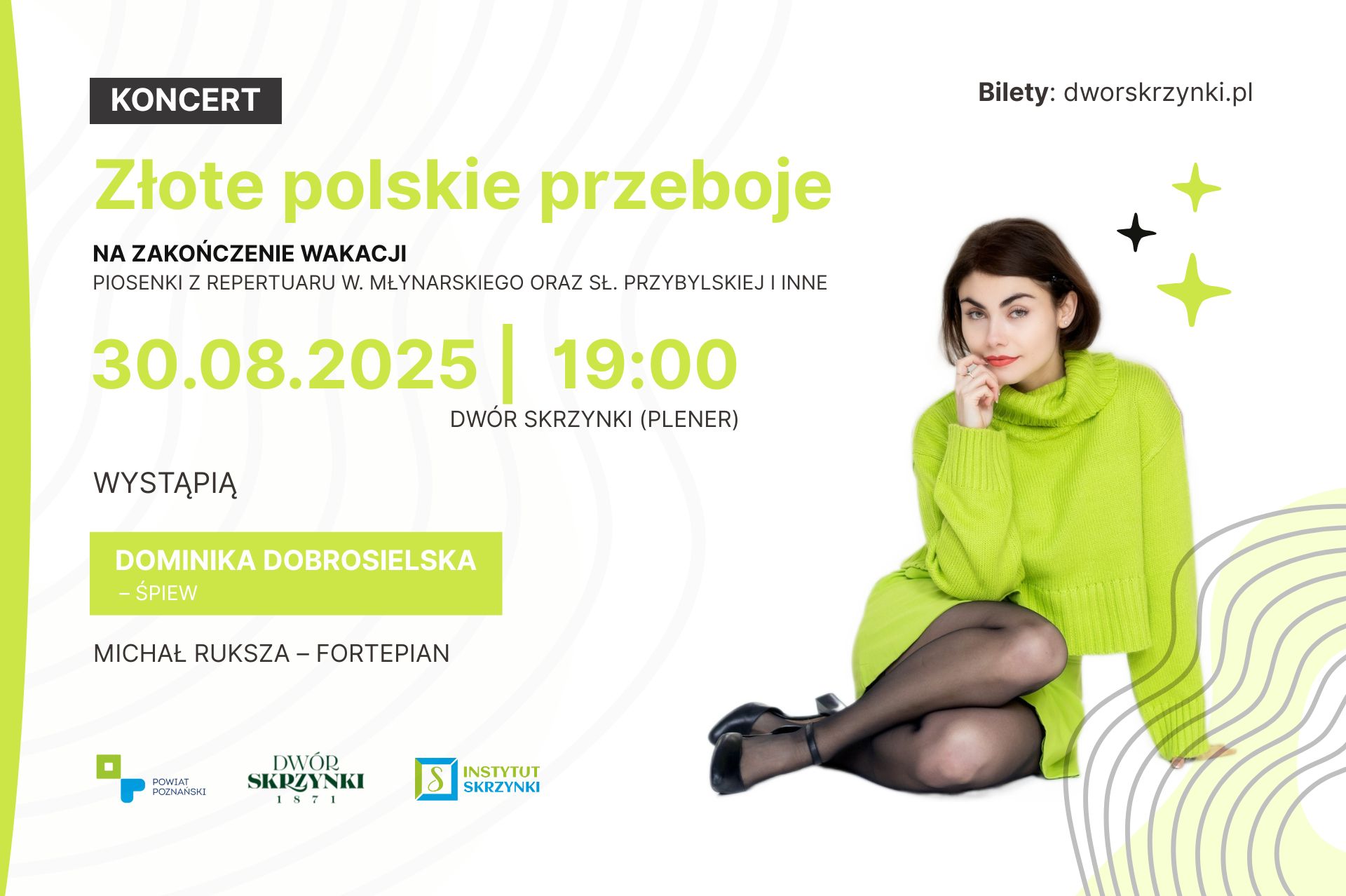 W ostatnią wakacyjną sobotę – 30 sierpnia o 19:00 najpiękniejszymi polskimi piosenkami Dominika Dobrosielska pożegna koncertowe lato w Dworze Skrzynki.