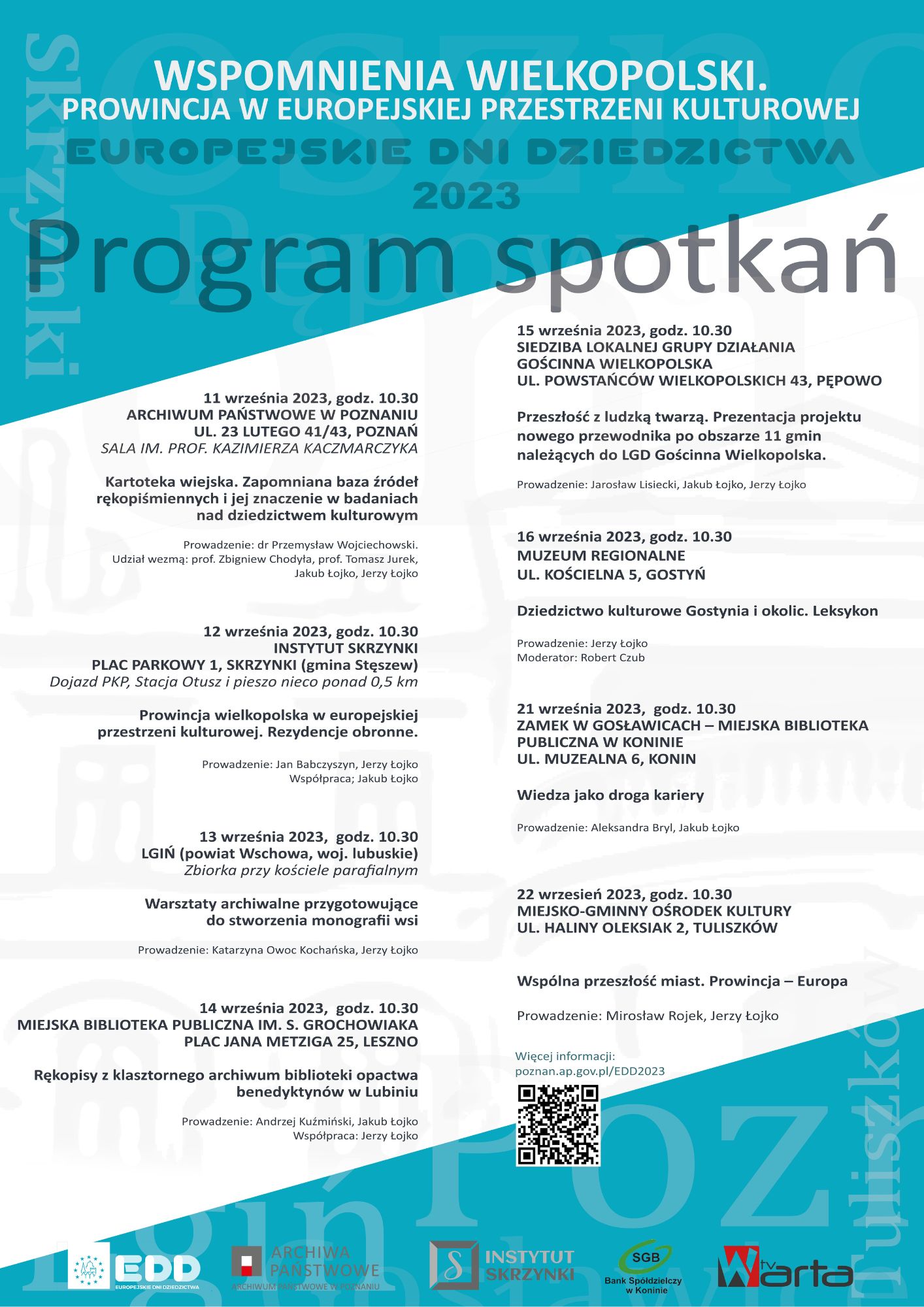 W dniach 11-22 września odbywać się będą Europejskie Dni Dziedzictwa pod hasłem: Wspomnienia Wielkopolski – prowincja w europejskiej przestrzeni kulturowej. Dnia 12 września br. o godz. 10.30 zapraszamy do Dworu Skrzynki – siedziby samorządowej instytucji kultury Instytutu Skrzynki – Instytut Dokumentacji, Rozwoju i Promocji Dziedzictwa Kulturowego i Kulinarnego Powiatu Poznańskiego. Wykład pt. „Prowincja wielkopolska w europejskiej przestrzeni kulturowej” poprowadzą Jan Babczyszyn (Dyrektor Instytutu i gospodarz wydarzenia) oraz Jerzy Łojko (historyk). Wstęp wolny – serdecznie zapraszamy!